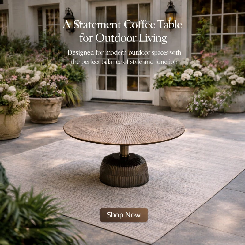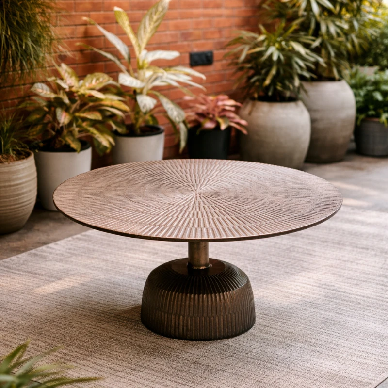 Elevate your outdoor living space with this statement round coffee table, designed to blend modern craftsmanship with timeless appeal. Featuring a textured tabletop and a sturdy pedestal base, this piece offers both visual interest and lasting durability. Ideal for patios, balconies, or garden seating areas, it serves as a stylish centerpiece for relaxed gatherings and everyday outdoor moments.