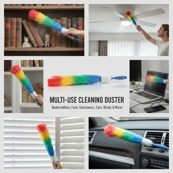 Ideal for cleaning furniture, shelves, electronics, fans, and car interiors — keeping your home bright, clean, and dust-free with ease.