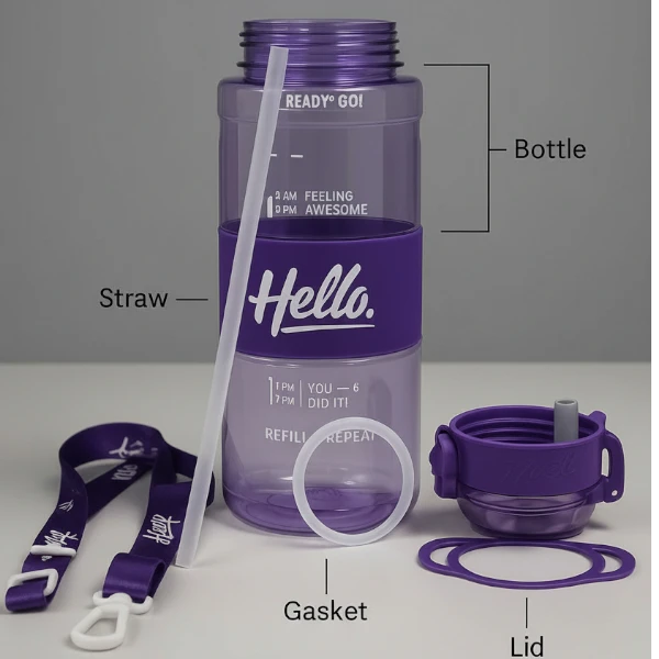 Leak-proof reusable water bottle with straw, perfect for gym, office, school, and travel.
