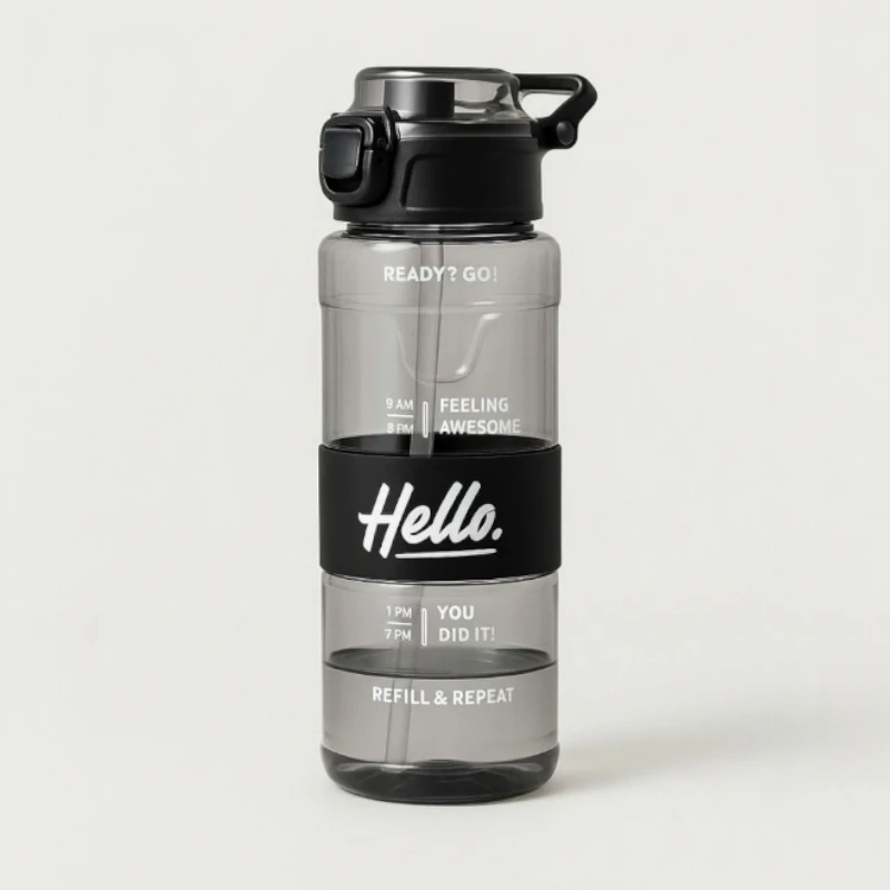 Stay hydrated in style with this premium motivational water bottle designed for daily use. Made from high-quality, BPA-free plastic, this bottle is safe, durable, and lightweight. It features a built-in straw for easy sipping and a secure flip-top lid to prevent leaks.