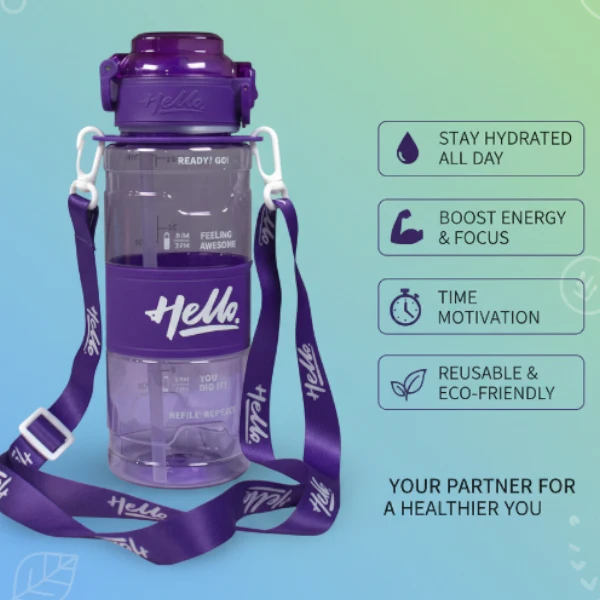 The ergonomic grip design makes it comfortable to hold, while the wide mouth allows easy cleaning and ice filling. With its attractive green color and “Hello” print, this bottle is perfect for workouts, office work, outdoor activities, school, and travel.