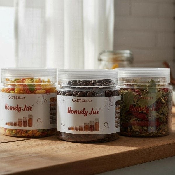 Steelo Storage Containers Set — premium quality, food-grade jars designed to keep kitchen ingredients fresh and well-organized. Featuring a clear transparent body for easy visibility and a sleek modern look, these containers are ideal for storing spices, grains, snacks, pulses, dry fruits, sugar, tea, coffee, and more. Airtight seal locks in freshness, while the space-saving straight shape fits neatly on kitchen counters and pantry racks.